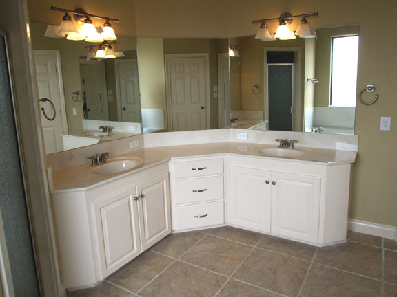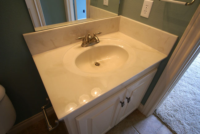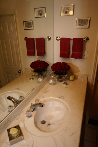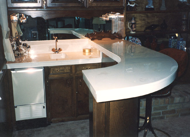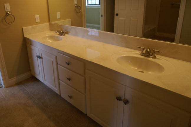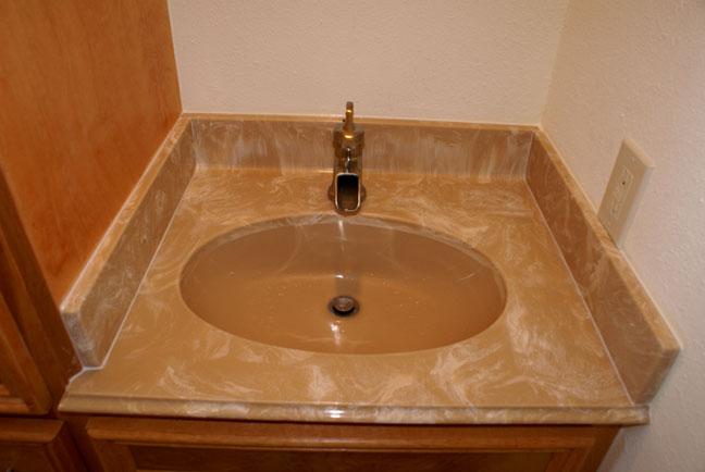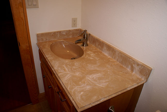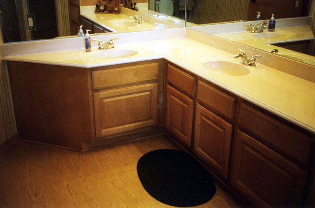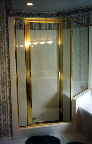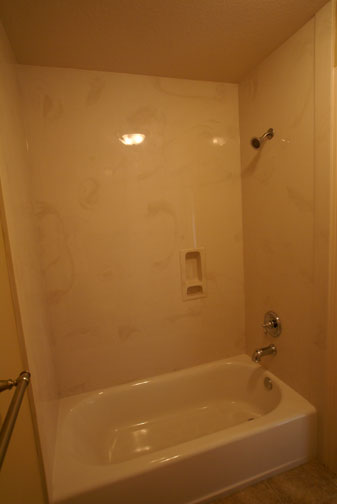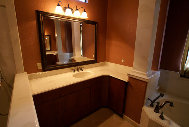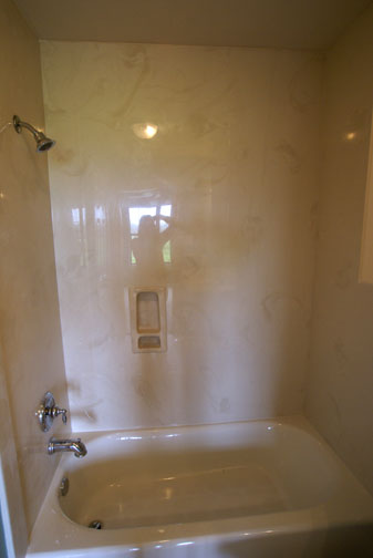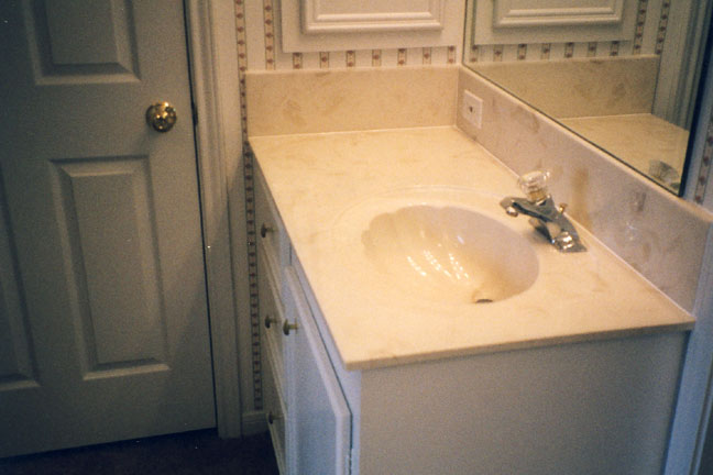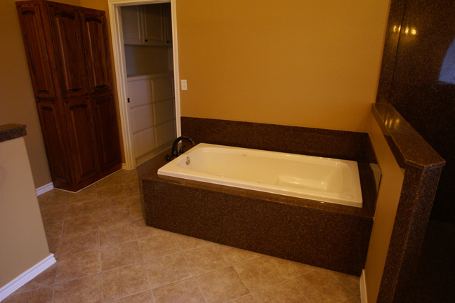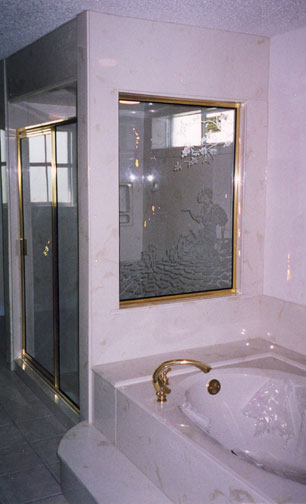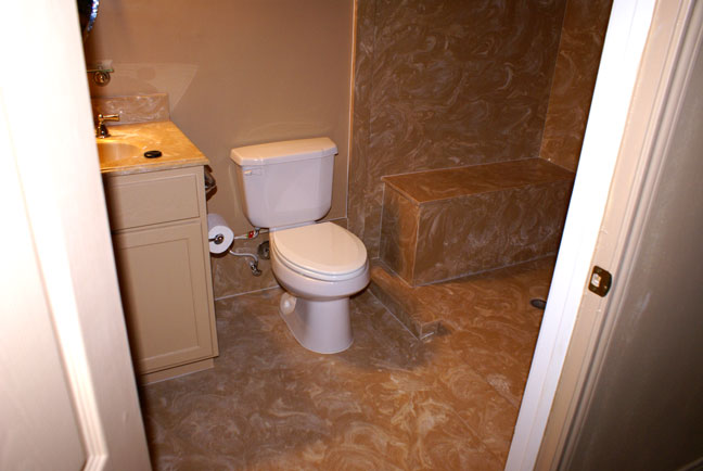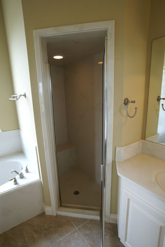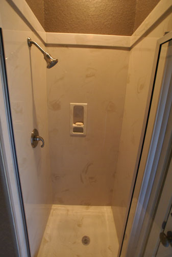 Above: made-to-order cultured marble bathtub, columns, tub surrounds and walk-in shower